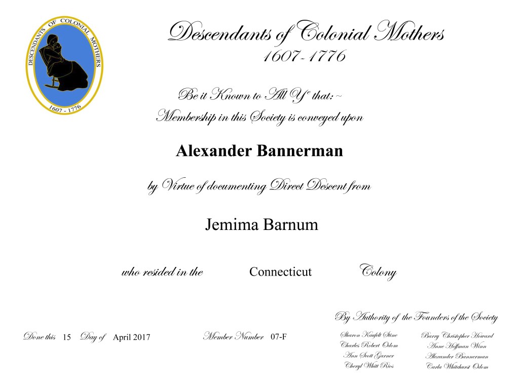 Membership includes a certificate bearing the member’s name, the Colonial Mother from whom descent is claimed, the colony in which she lived, the date of membership, and membership number. Our Membership Insigne is offered in miniature size suspended from a breast ribbon, and may be purchased separately once membership is established.